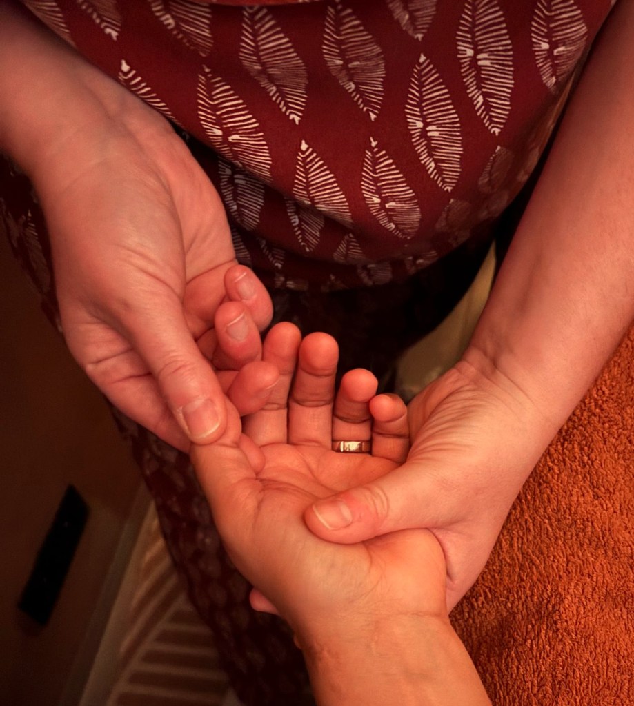 Tout comme sur les pieds, les différentes parties du corps se retrouvent également en correspondance sur la paume, les doigts et le dessus des mains où près de 3000 terminaisons nerveuses sont présentes.